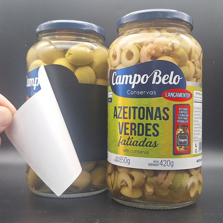Yksi Brasilian suurimmista oliivialan yrityksistä, Conservas Campo Belo, on kehittänyt uudenlaisen etiketin säilykeoliivitölkkiin. Kaksikerroksisen etiketin ylempään kerrokseen on painettu oliivien tiedot ja logot ynnä muu viestinnällinnen sisältö. Kun oliivit on syöty, yläkerros voidaan helposti poistaa ja sen alta paljastuu musta, liitutaulua muistuttava etiketti. Innovaatio sai alkunasa Innovaatio sai alkunsa Campo Belon ostopäällikön Talita Almeidan ehdotuksesta. Brasiliassa tyhjiä astioita käytetään usein uusien tuotteiden säilyttämiseen ja yritys sai kuluttajilta palautetta siitä, että oliivipurkkien etiketit oli liimattu kiinni liian tiukasti, mikä hankaloitti uudelleenkäyttöä. Nyt liitutauluetikettiin voi helposti kirjoittaa uudelleenkäytetyn purkin sisällön ja esimerkiksi tuotteen viimeisen käyttöpäivämäärän, joka usein katoaa, kun ensisijainen pakkaus hävitetään.